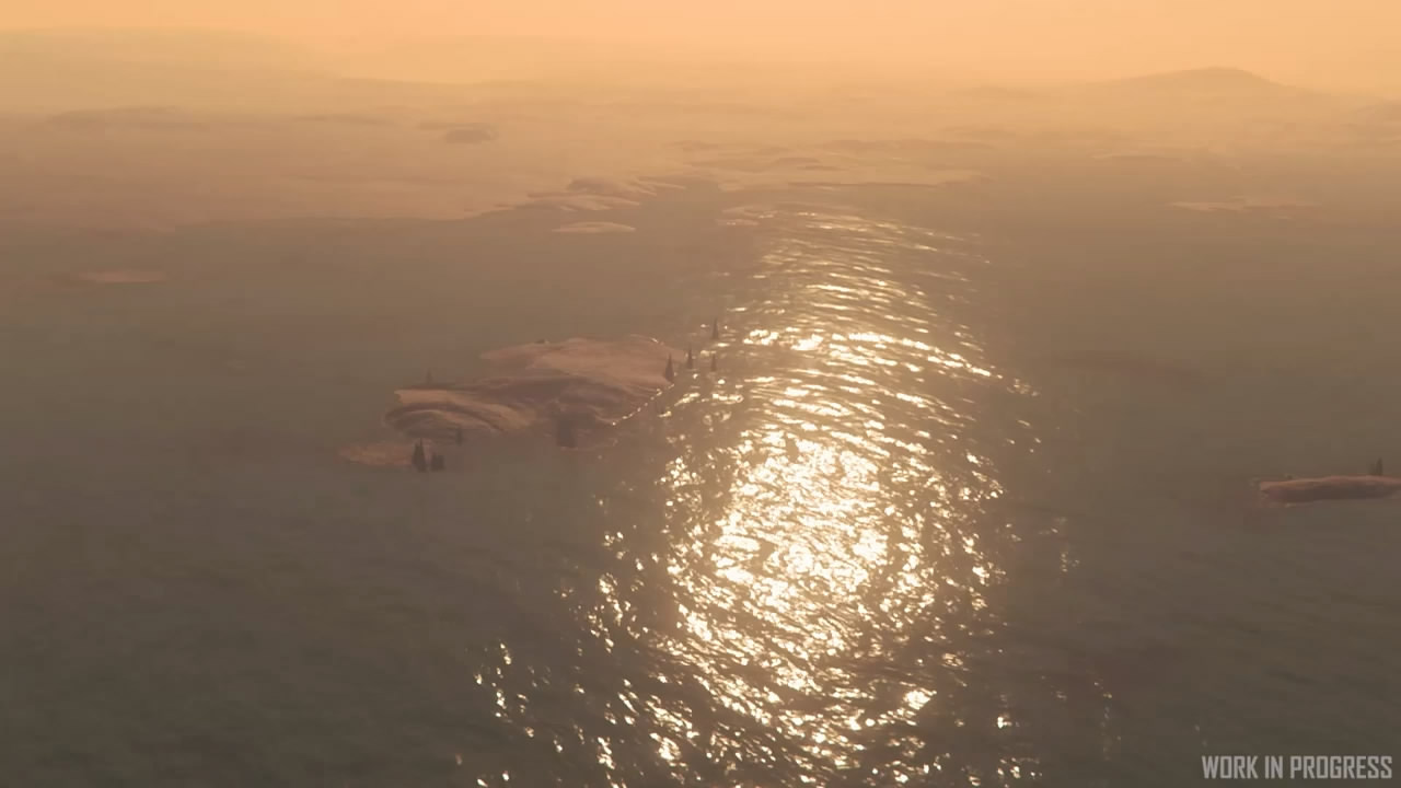 新版中则不会有这样的麻烦出现,新的降落辅助指示线会指引玩家到达目的地。此外从视频中还能看到让人印象深刻的视觉效果,比如行星海洋水面新效果,行星大气层粒子新特效等。