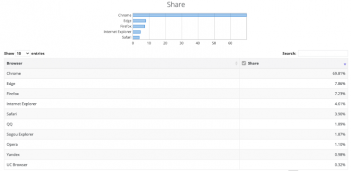 这就意味者,全球范围内,10 个电脑用户差不多有 7 个都在使用 Google Chrome。