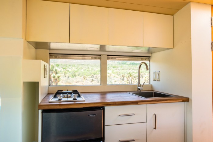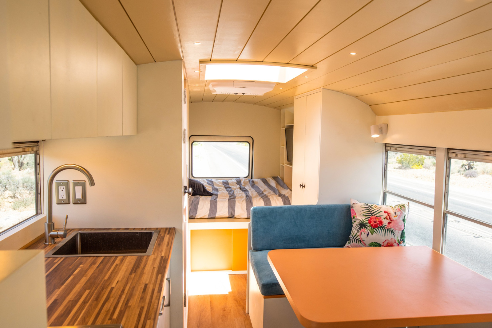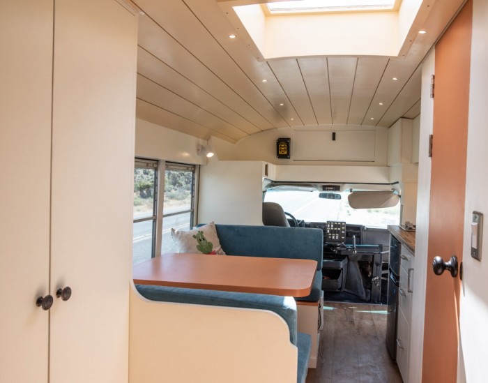 Mybushotel的B-Hotel概念车则是从Natasha借鉴而来,并以来自凤凰城AAA巴士的22英尺(6.7米)的退役校车为基础。这种迷你巴士的形态让这个行驶在路上的小房子有了一辆大型露营车的紧凑长度,同时内部的空间也变得更大,Mybushotel认为这样的设计既适合居住空间又适合驾驶灵活性。