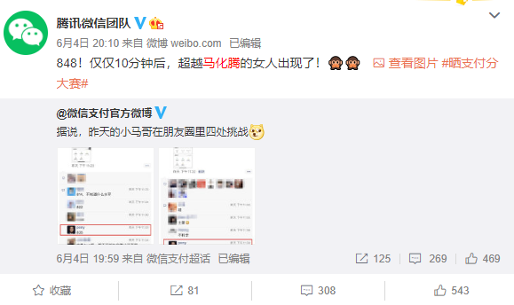 不过很快,腾讯微信团队晒出了大神级别人物的存在:“848!仅仅10分钟后,超越马化腾的女人出现了!”