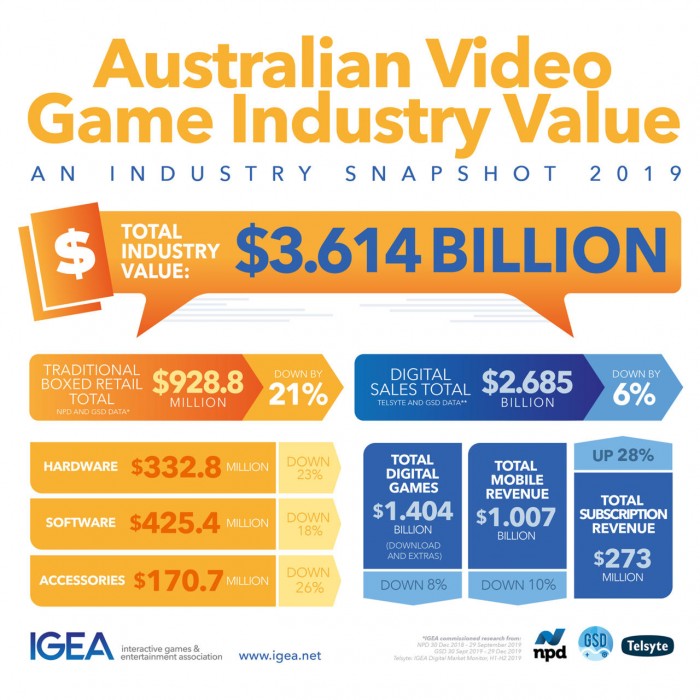 根据澳大利亚互动游戏兼娱乐协会(IGEA)发布的一份报告,澳大利亚电子游戏市场在2019年经历了一次下滑,即将发售的次世代主机PS5和XSX将帮助澳大利亚游戏产业复苏。IGEA的报道指出2019年澳大利亚游戏产业产生了36.14亿美元,相比来说2018年这一数值超过了40亿美元。