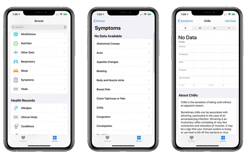 健康应用中此前推出的月经追踪功能有记录与月经有关的症状的选项,但这个一般症状功能更加广泛,估计会让患者与医生分享更详细的健康信息。