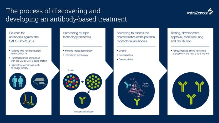 这些药物可能足以补充疫苗和其他疗法的不足,如果没有疫苗,很可能会取代疫苗。此外单克隆抗体药物可能会变成比疫苗更容易制造和销售。在这种情况发生之前,阿斯利康和其他所有开发类似疗程的公司必须证明这些药物确实能抑制病毒。该公司已经与学术界和美国政府机构就该项目签署了协议。