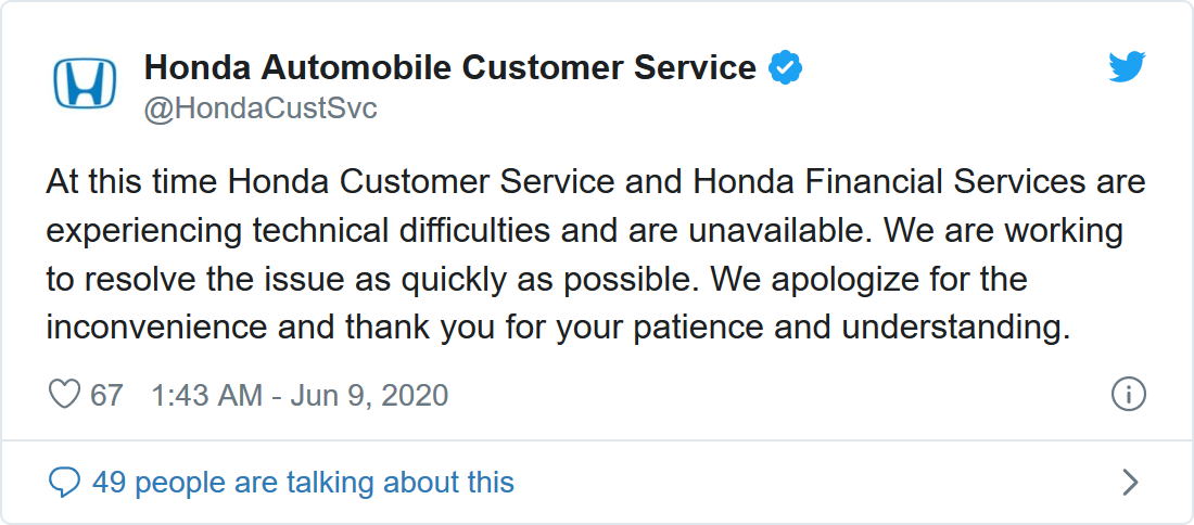 据Twitter上的投诉显示,虽然本田表示一些工厂正在重新开工,但业主无法进行在线支付或进入公司的客户服务网站。该公司北美最大的客户和金融服务办公室的一名员工告诉The Verge,临时员工在办公室关闭时是没有工资的。