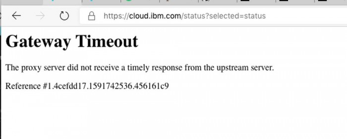 目前 IBM 自家的状态页面已经无法加载,并返回了一个内部服务器错误,目前尚不清楚本次宕机事件的受影响范围,也不清楚是什么原因所导致的。