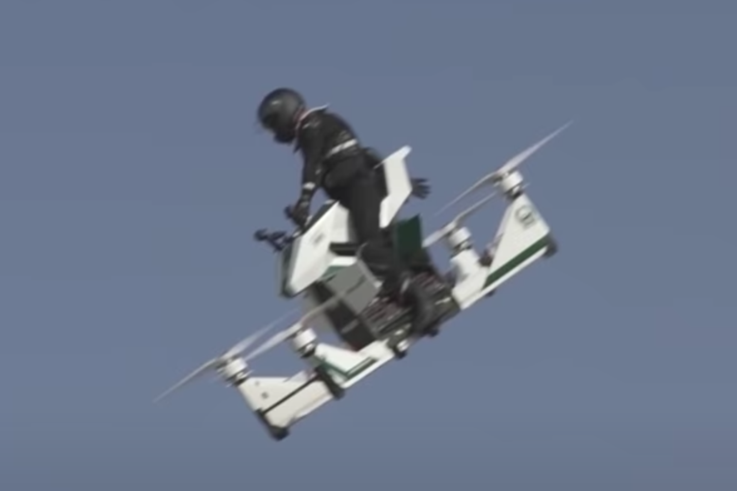 据外媒报道,当我们第一次看到Hoversurf Scorpion飞行摩托车的时候,大家会认为它只是为有抱负截肢者准备的交通工具。四个暴露在外的螺旋桨就在驾驶者的周围快速旋转,这看起来相当危险,考虑到其给驾驶者提供的只有越野摩托头盔和一套防护服,所以当这辆飞行摩托坠毁时那画面可能真的难以想象。