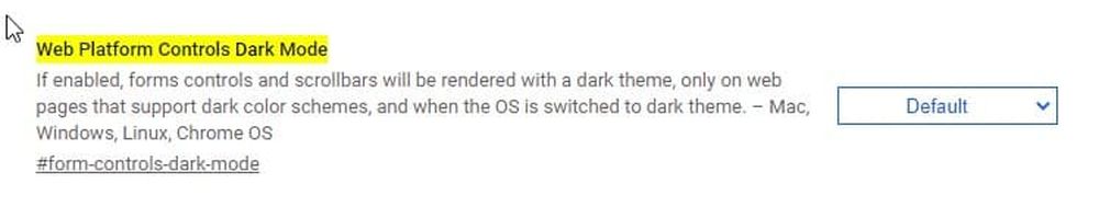 3.你应该看到一个搜索框,在上面输入 "Web Platform Controls dark mode"。