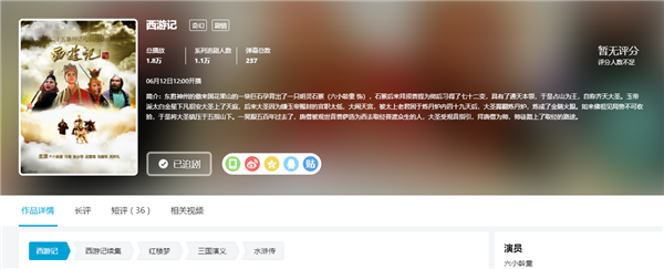 自6月12日中午12点开始,B站将播放央视四大名著电视剧,分别是《西游记》1986年版、《西游记续集》2000年版、《水浒传》1998 年版、《三国演义》1994年版、《红楼梦》1987年版。