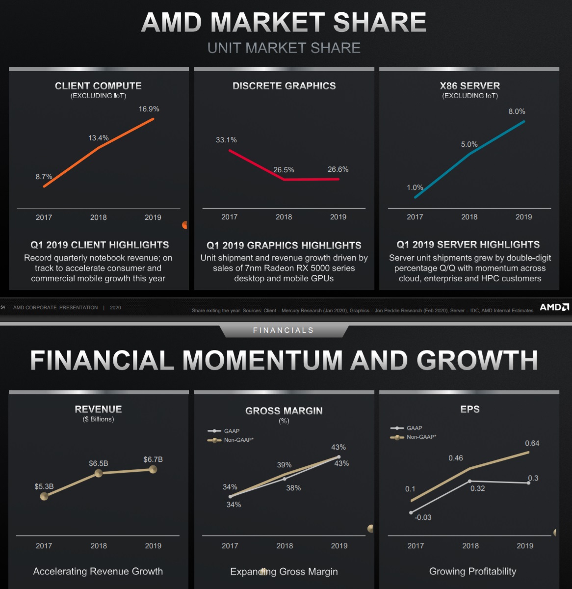 GPU方面,RNDA2相较于RDNA1,单位功耗的性能增幅为50%,同时AMD也保证显卡频率会有所增加。RDNA2的首发应该就是Big Navi,从AMD预告到现在已经很久时间了,相信不会令人失望。