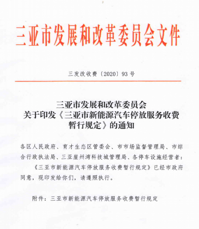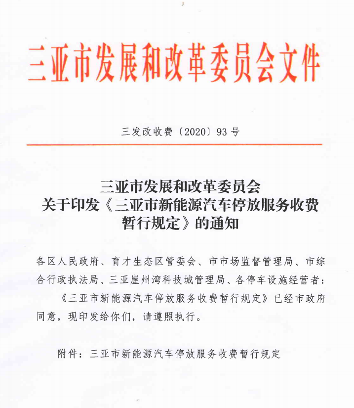 近日,三亚市发展和改革委员会印发《三亚市新能源汽车停放服务收费暂行规定》。规定明确,自7月1日起,新能源汽车在三亚道路停车泊位,每日8时至22时,1小时内免收车辆停放服务费;22时至次日8时免收车辆停放服务费。规定有效期为3年。