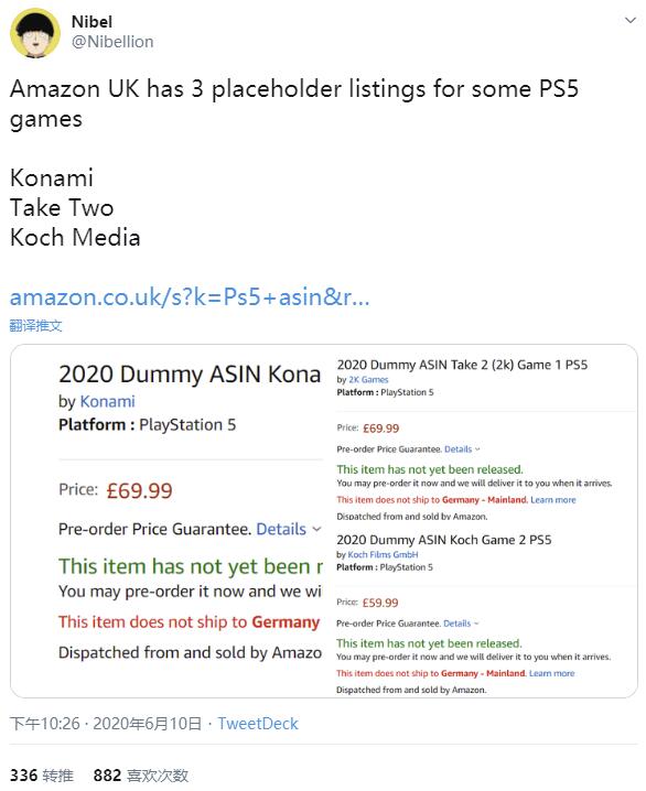 亚马逊英国在其网站上列出了三款新的PS5游戏,来自发行商Konami, Take-Two和Koch Media。这三个游戏相应产品页面没有提供关于游戏的细节,只是提供了一个占位用图像和标题。最有趣的是,游戏的价格是69.99英镑,这比传统的45- 60英镑的价格要高很多。