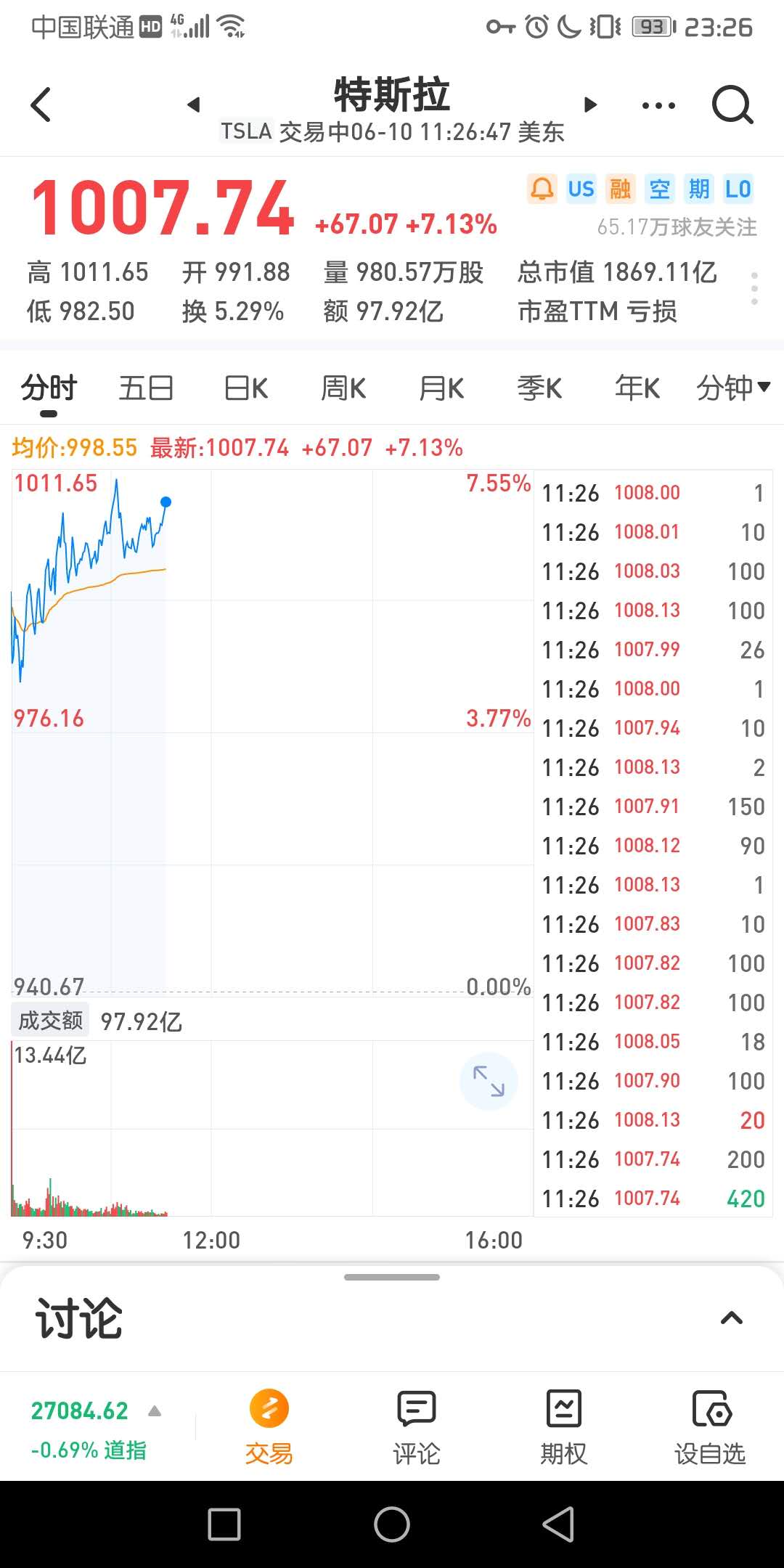 特斯拉股价突破1000美元关口,涨幅超6%,总市值达1850亿美元,此前已超越丰田成为全球市值最高汽车公司。根据资料,丰田2019年销量为1072万辆,而特斯拉为30万辆。
