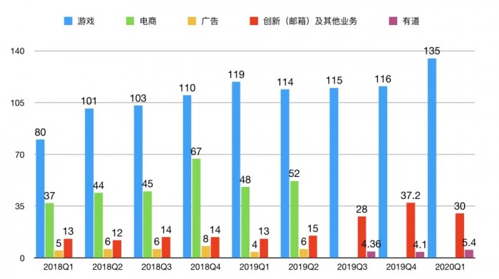 (网易各季度营收构成,单位:亿元)