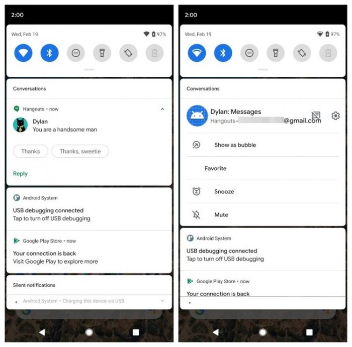 Android 11顶部通知栏提供了对话通知选项,来通知时你可以以气泡形式打开并在主屏幕上创建会话快捷方式或者设置提醒。