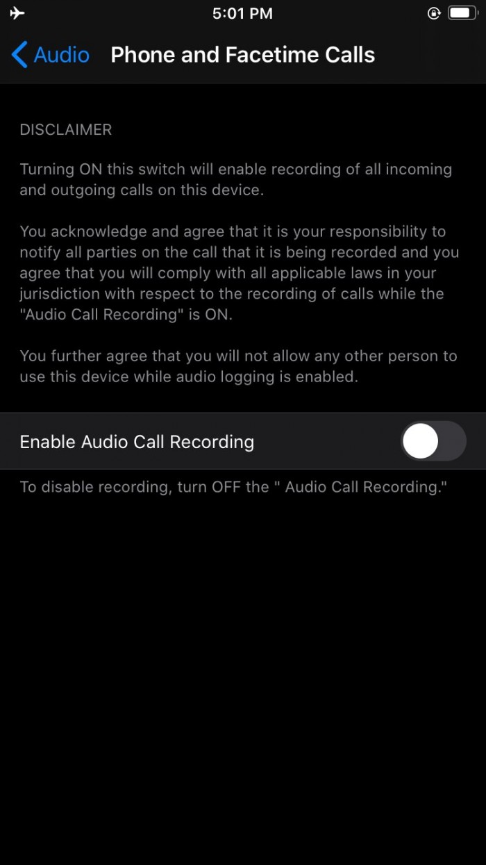 设置面板还显示,用户应该会在开始录音之前通知音频通话的各方--这可能是因为在某些地区未经同意记录他人的行为属违法行为。