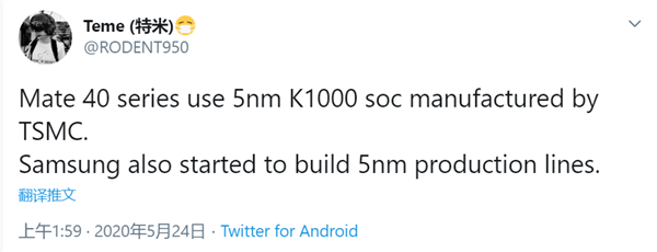 此前国外爆料人RODENT950曾透露,华为下一代旗舰芯片命名为麒麟1000(一说麒麟1020),由台积电5nm工艺打造。