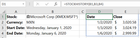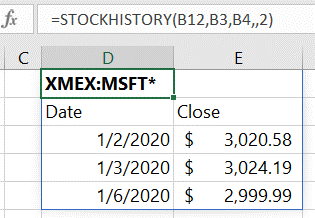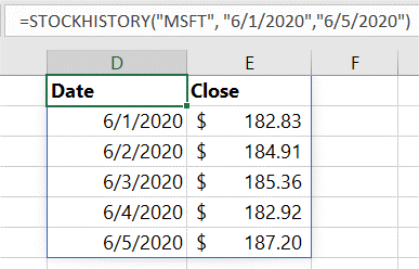 动态数组通过在单元格中引入一项函数,从而将数据划分到多个单元格中。目前该功能已经支持SORT、FILTER等函数,但现在STOCKHISTORY也利用它来显示历史股票数据。