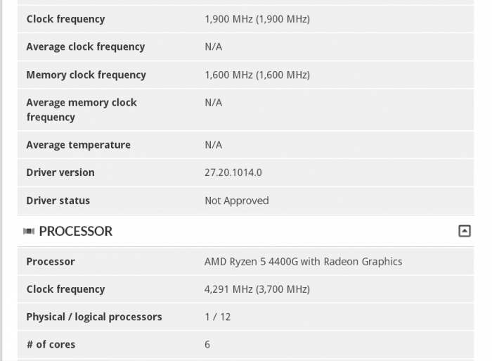 此外@TUM_APISAK找到了张Ryzen 5 4400G的3DMark 11P测试截图,它的图形得分是4395,物理得分是10241,这是一个6核12线程的处理器,CPU的基础频率是3.7GHz,加速频率4.3GHz,而整合的核显频率是1900MHz,这与此前泄露的桌面版Renoir处理器规格表相一致,看来此前的消息还是有点靠谱的,根据此前泄露的信息,它整合的核显应该是Vega 7。