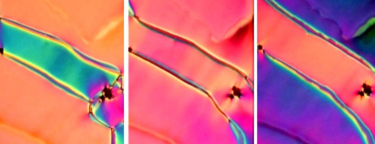 科罗拉多大学波尔得分校软材料研究中心的科学家们正在用一种名为RM734的有机分子进行实验,该分子在高温下表现出传统的线粒体液晶相,而在低温下则表现出另一种不寻常的相。当在显微镜下观察这种分子时,研究小组注意到,当受到微弱电场的影响时,含有液晶的细胞边缘开始出现引人注目的混合颜色。进一步的调查显示,RM734的这一阶段对电场的反应比典型的线粒体液晶灵敏100到1000倍,当它从较高的温度冷却时,自发地形成了成片的排列分子。