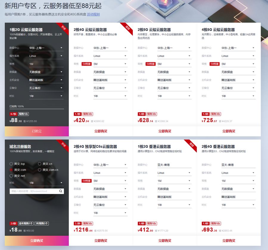 1. 在新用户专区购买任一云产品(低至1折哦~),立得加价特惠专区购买资格;