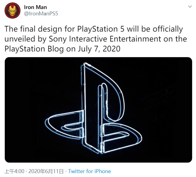 爆料@人IronManPS5在推特中称,索尼互娱在7月7日才会正式公布PS5的最终设计,并且会在PlayStation官方博客上发布。