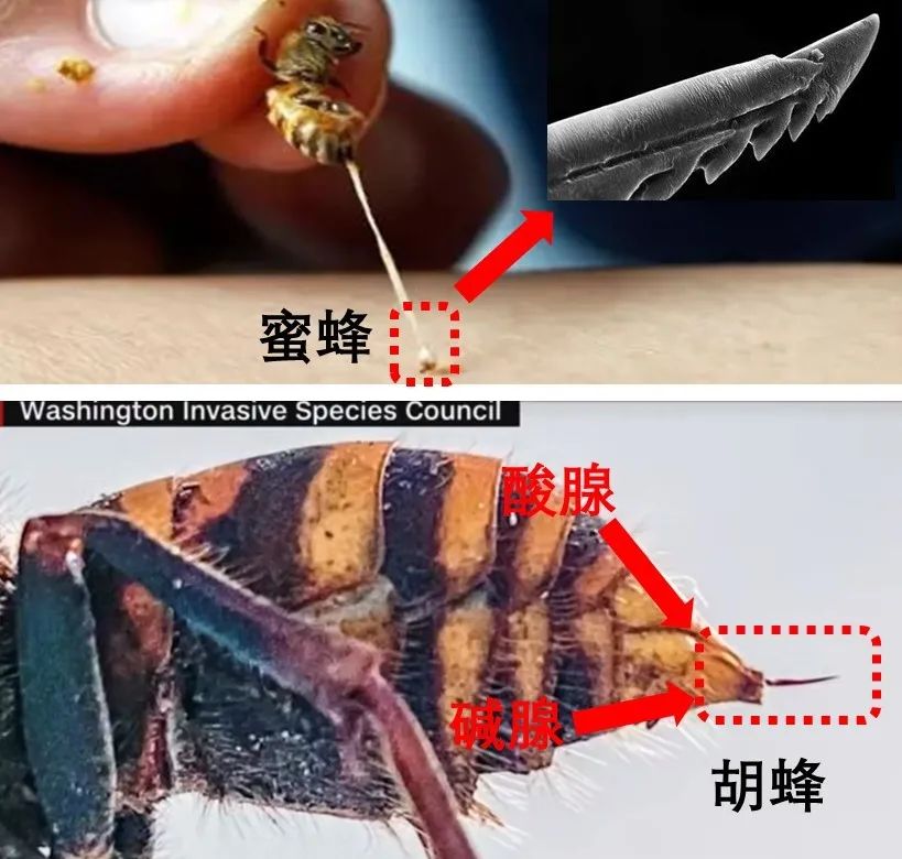 而且这还是一把有毒的“匕首”。其一端通过导管接入毒囊,毒囊连接酸腺,可分泌酸性液体;而另一端连接着碱腺,一旦蛰针刺入目标体内,酸碱液就同时释放,致毒性发作。