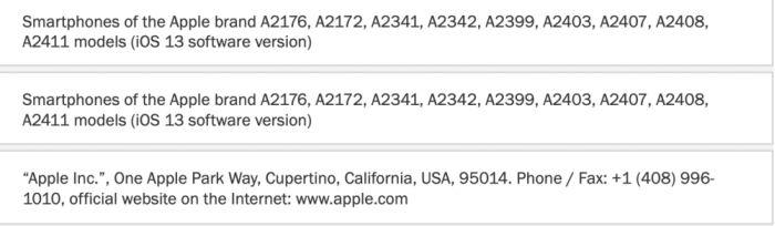 这次,苹果注册了 9 台未发布的 iPhone,型号分别是 A2176、 A2172、 A2341、 A2342、 A2399、 A2403、A2407、 A2408 和 A2411。
