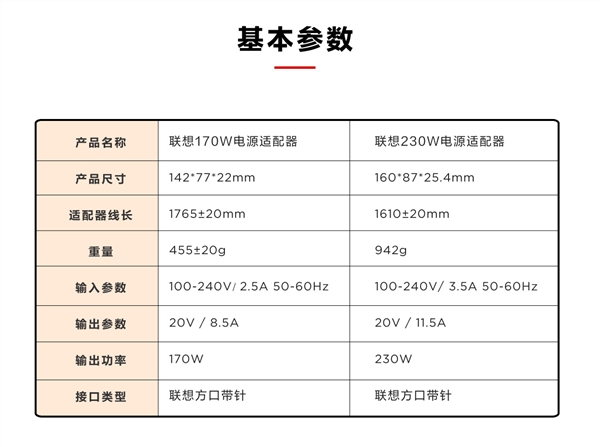 联想拯救者170W、230W方口电源适配器的价格分别为299元、399元,并将于6月22日上架京东、天猫。