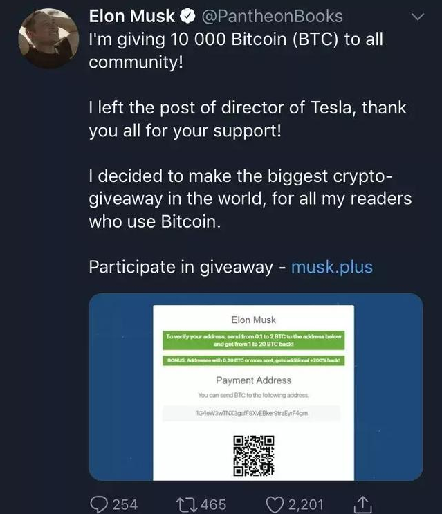 马斯克已经不是第一次被黑客盯上了,早在 2018 年,黑客就冒充马斯克的推特账号进行比特币诈骗了,当时诈骗金额接近 17 万美元,相当于人民币 120 万。