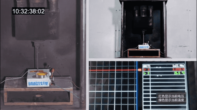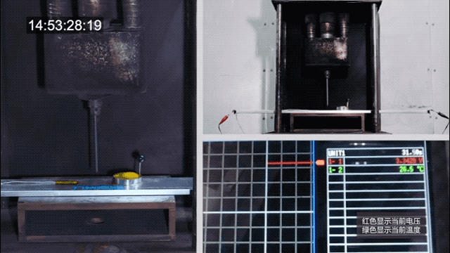 真正令网友沸腾和网络热议的在于接下来比亚迪播放的三个视频片段,分别是:某三元锂电池针刺实验、某磷酸铁锂电池针刺实验、“刀片电池”针刺实验。