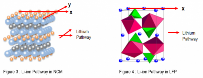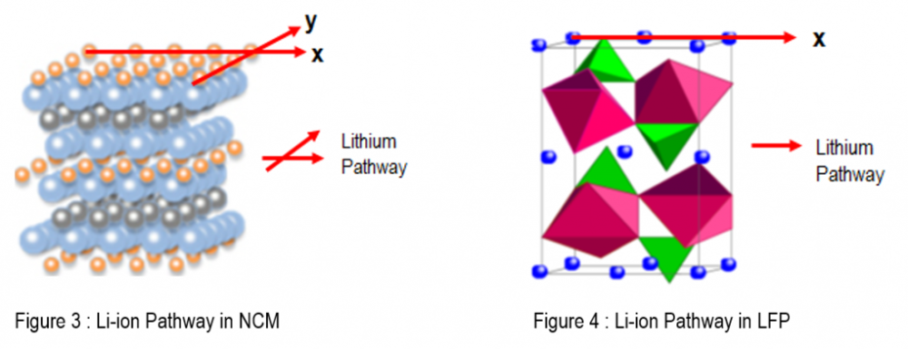 低温性能差,相比于三元锂在-20度拥有70%左右的容量,磷酸铁锂则仅有50%左右。主要原因仍在于其正极材料的结构,虽然前面提到通过包碳以及纳米材料等技术,提高了该结构下锂离子自由度。但在低温下,仍无法解决该问题。
