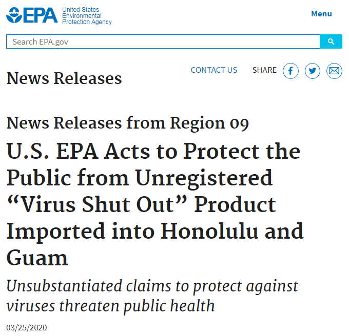 美国环境保护署(EPA)已经向亚马逊和 eBay 等电商平台发去了通知,要求其清理下架那些宣称可以杀灭新冠病毒的违规商品。本次通告适用于那些此前已被 EPA 列入非法目录的产品(比如所谓的‘灭毒’消毒剂),以及在美国受到严格管制的部分危险化学品(比如二氯甲烷)。除了打着新冠幌子的杀毒产品,这项命令也没有放过那些挂着虚假安全声明的产品和广告。