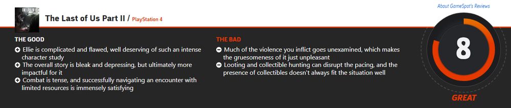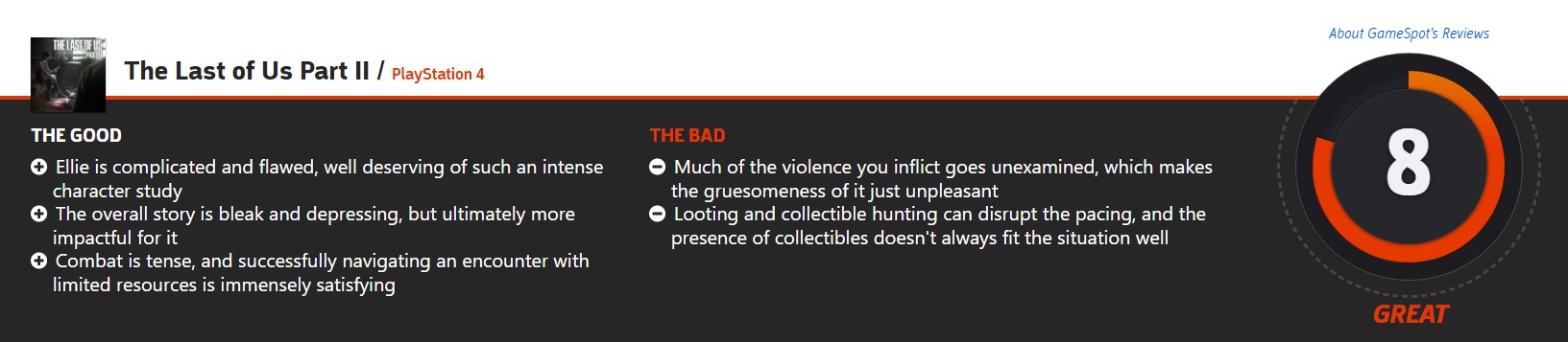 备受期待的《最后生还者:第二部》媒体评分刚刚解禁,GameSpot为其打出了8分的评价。