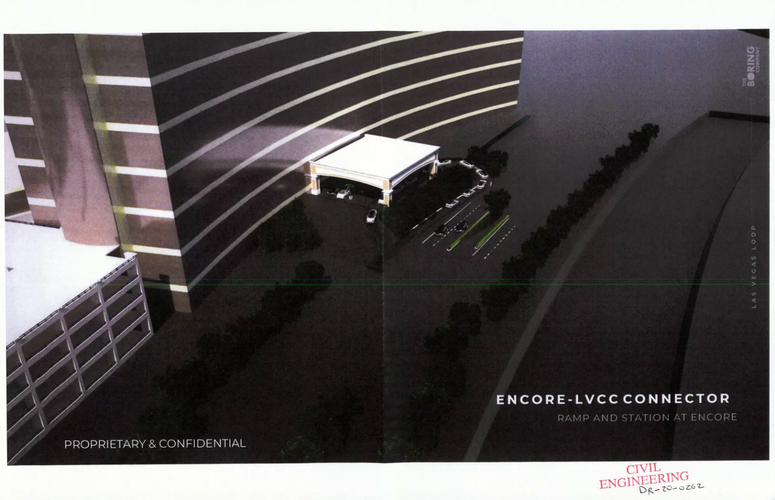 永利度假村和Boring Company希望挖掘一条0.6英里长的隧道,从Encore到LVCC的Silver Lot 2停车场,中间不设停站点。该提案指出,LVCC停车场的登机区将要移走约25个停车位。Encore的乘客将在酒店赌场外的现有巴士车道上上车,两端的站点都将设在地面。