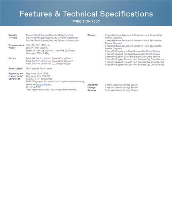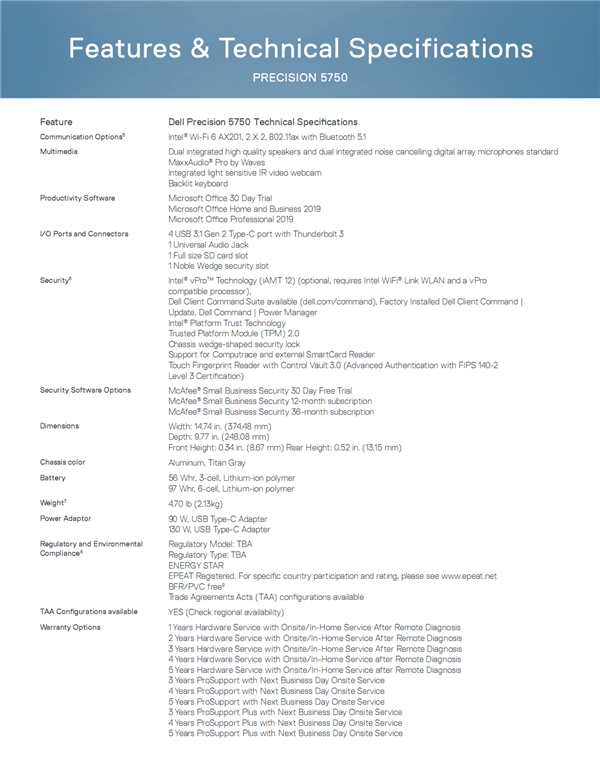 Precision 5750/5550前者号称最轻、最小、最亮的17英寸工作站(8.67-13.15毫米/2.13公斤),后者则比上代缩小了6%(7.7-11.6毫米/1.84公斤起),铝质加碳纤维混合机身,性能与便携性更加平衡,四窄边框,后者屏占比62%。