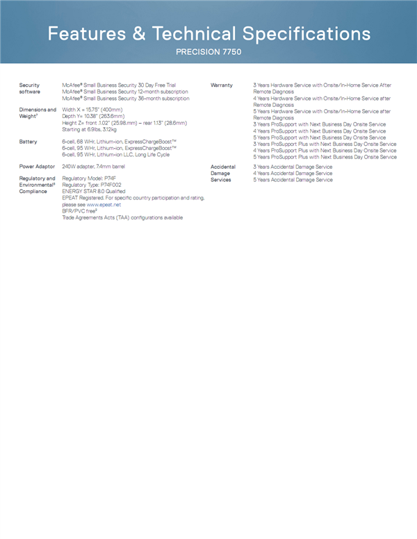 比如最顶级的Precision 7750,号称世界上最强大的标准移动工作站,但减小比上代体积19%(25.98-28.6毫米/3.12公斤),触摸板增大21%,新的Pro 2键盘的顶级扬声器,17.3英寸的屏幕最高可选4K分辨率、60Hz刷新率、100% Adobe RGB色域、500nits亮度、HDR400。