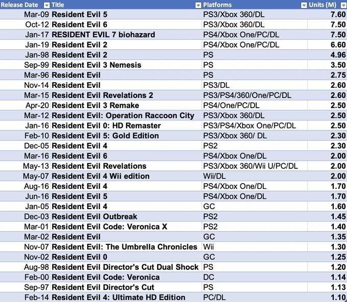 同时也有爆料人曝光了《生化危机》各作销量,前5名分别为《生化危机5》(760万)、《生化危机6》(750万)、《生化危机7》(750万)、《生化危机2重制版》(660万)、《生化危机2》(496万)。