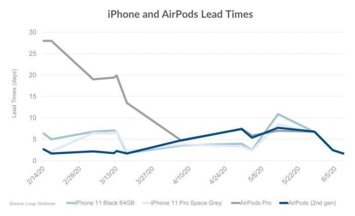 至于论据也十分简单,目前64GB的iPhone 11和iPhone 11 Pro交货时间已经从3月13日的13.6天、5月14日的9.7天下降至目前的1.6天。