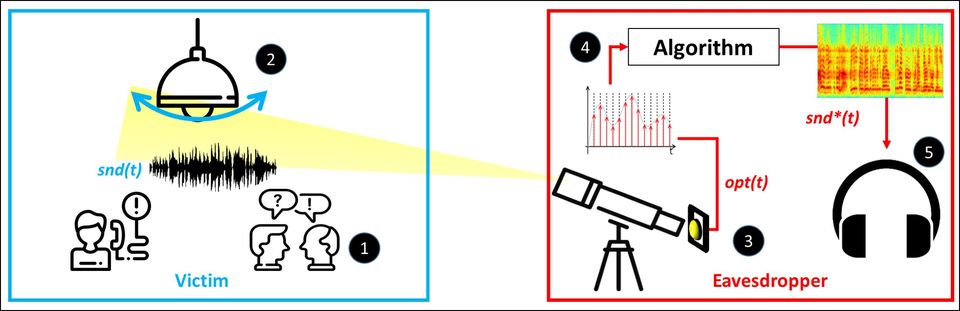由以色列本·古里安大学和魏茨曼科学研究学院组成的科学团队,近日展示了一种神奇的窃听技术,只需要一个灯泡、一台笔记本电脑和价值不到 1000 美元的设备就能实现窃听。 这种技术被称之为“lamphone”侧通道攻击,主要利用光电传感器来分析灯泡对声音的频率响应。"lamphone"测量的是声波撞击灯泡时产生的微小的光波动,并使其产生轻微的振动。电光传感器能够通过四个阶段将音频信号与光信号隔离开来。