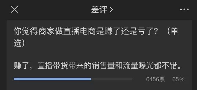 参与投票的 65% 差友认为,商家参与直播电商赚了▼