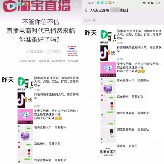 也就是说,这些主播( 或背后的机构 )只需要很少的成本,就能在任意直播平台刷出一个数据不错的 “ 大 V ” 号,开始四处招商 “ 赚 ” 钱了。