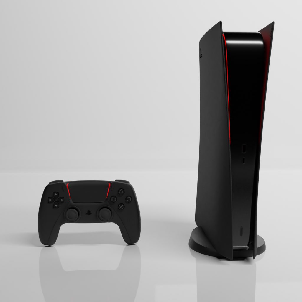 虽然说官方没有公布,但是创造力丰富的网友们就开始为PS5打造各种配色图了,网友们制作除了各式配色的PS5,有黑蓝、黑红、明黄、红黑、蓝黑、粉色、白红、灰蓝等等,当然黑色版本的PS5依旧是那么低调炫酷。