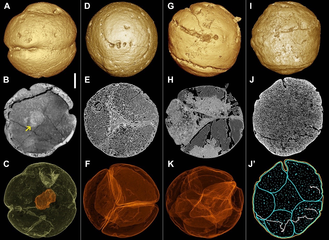 为此,中科院南京地质古生物研究所早期生命研究团队的殷宗军研究员、朱茂炎研究员和中国地质科学院地质研究所刘鹏举研究员以及英国布里斯托大学Philip Donoghue教授等合作,采用高分辨率显微CT和同步辐射显微断层成像技术,扫描了300百多个瓮安旋孔虫化石标本,最终找到了十几个化石保存了精美的内部生物学结构。