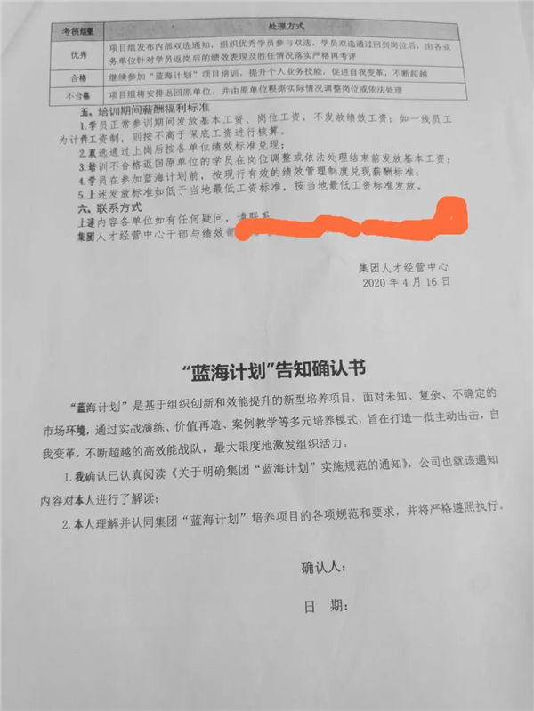 这对于参加“蓝海计划”的员工来讲,意味着工资大幅降低,同时未来职位面临较大的不确定性,这也成为让不少员工选择主动离职的原因之一。