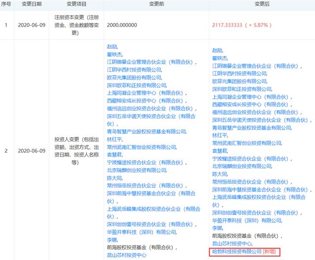 6月12日消息,近日华为旗下投资公司——哈勃科技投资有限公司(以下简称“哈勃投资”)再度出手,入股了常州纵慧芯光半导体科技有限公司(以下简称“纵慧芯光”)。根据天眼查资料显示,6月9日,纵慧芯光的工商注册信息发生变更,新增股东哈勃科技投资有限公司,具体投资金额及持股比例不详。同时公司注册资本也从2000万人民币增至约2117.3万人民币,增幅为5.87%。