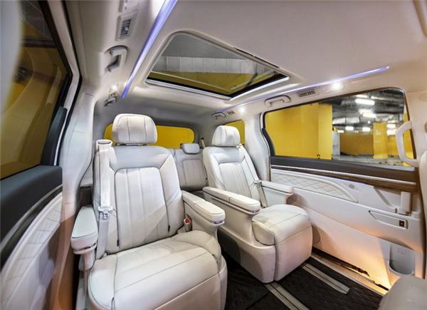 和众多豪华MPV一样,大师版车型的第二排布置了两张宽大的航空座椅,中高配车型第二排座椅带有加热/通风/按摩功能,并配有腿拖和第二排屏幕。