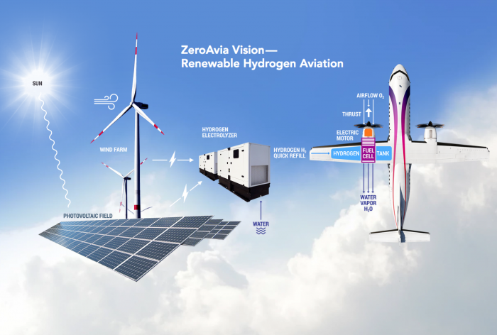 许多公司现在开始将氢能源视为解决方案。对于99%的汽车使用来说电池仍然是一个更好的解决方案,但氢气出色的能量密度使它成为一个更好的潜在对象,对于任何飞行的东西,人们不需要建立一个庞大的分销网络来满足中程氢气飞行。事实上,如果能把电送到机场那么就能在现场获得氢气。