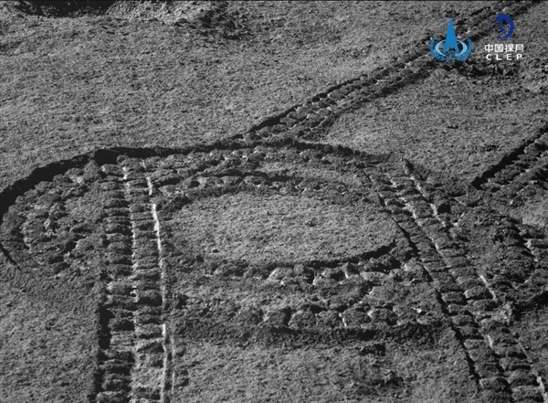 基于第17月昼LET01704点全景相机拼接影像、DOM影像等数据情况,玉兔二号月球车当前位置西南方向约3米处,发现一个直径约为1.3米、深度不超过20厘米的小坑,小坑中央及东南方向存在反射率较高的物质,同周围月壤的亮度有明显区别。