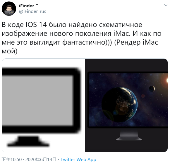 俄罗斯概念设计师 @iFinder_rus 率先在 Twitter 分享了这一消息,尽管图标的分辨率较低,但仍可发现它与当前一代的 iMac 外形设计存在着较大的差异。