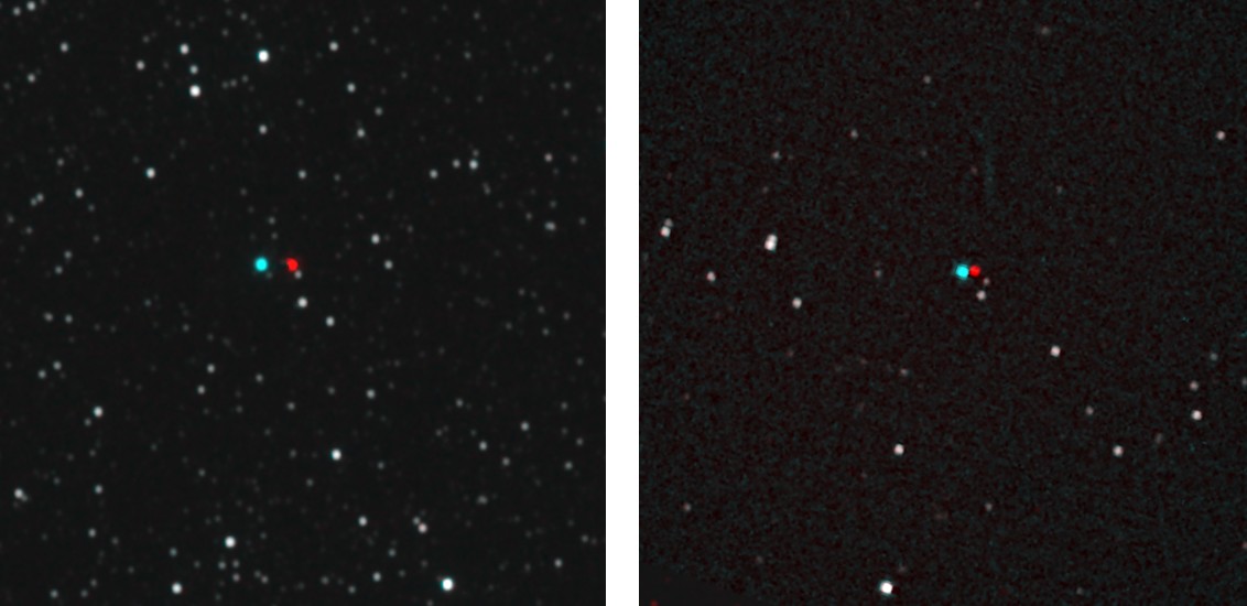 这些图像通过无线电链路传回美国宇航局(NASA),历时约6小时30分钟到达目的地,并与澳大利亚西丁泉天文台和亚利桑那州莱蒙山天文台同时在地球上拍摄的图像进行对比。两组图像进行对比,显示出明确的视差。